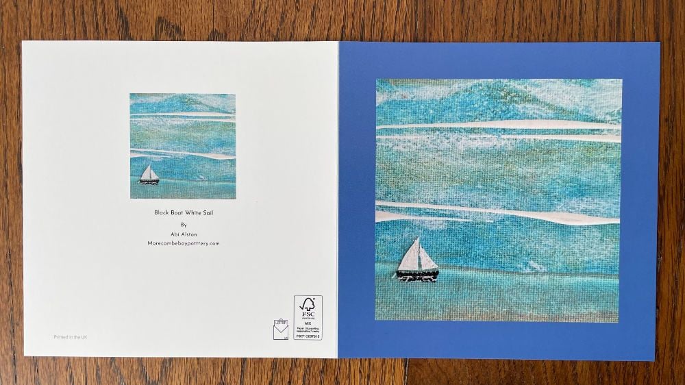 Abi's original art as a printed card on beautiful 300gsm smooth satin card stock. Blank matt inside and easy to write on, perfect for all occasions. All cards come with high quality white envelopes and cello bags. Sold as a 6 pack only: 300gsm / 395 micron rigid board, 150mm x 150mm square, high quality envelopes, clear cello bags, FSC certified.