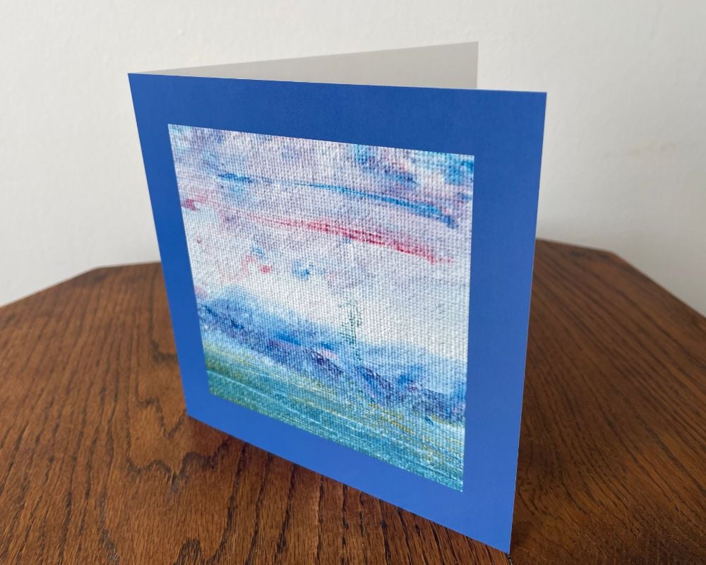 Abi's original art as a printed card on beautiful 300gsm smooth satin card stock. Blank matt inside and easy to write on, perfect for all occasions. All cards come with high quality white envelopes and cello bags. Sold as a 6 pack only: 300gsm / 395 micron rigid board, 150mm x 150mm square, high quality envelopes, clear cello bags, FSC certified.