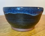 A lovely solid medium noodle or soup bowl with a night silhouette across an inky sea and a northern lights halo. Colours change throughout the day. Material: 100% clay. Microwave safe. Size: height 7cm, width 13cm. Weight: 409g.