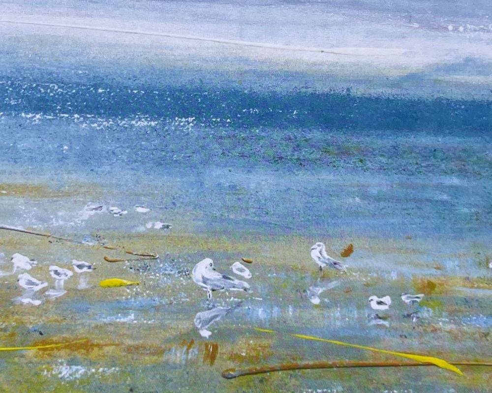 Art by Abi Morecambe Bay landscape card Spring Paddling. Abi's original art printed on beautiful 330gsm smooth matt card stock. Blank matt inside and easy to write on, perfect for all occasions. All cards come with high quality white envelopes and cello bags. Sold as a 6 pack only: 330gsm rigid matt artist board, 210mm x 150mm rectangle.